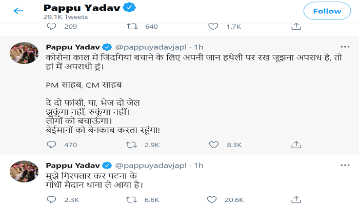 Pappu Yadav sent to jail for 14 days judicial custody