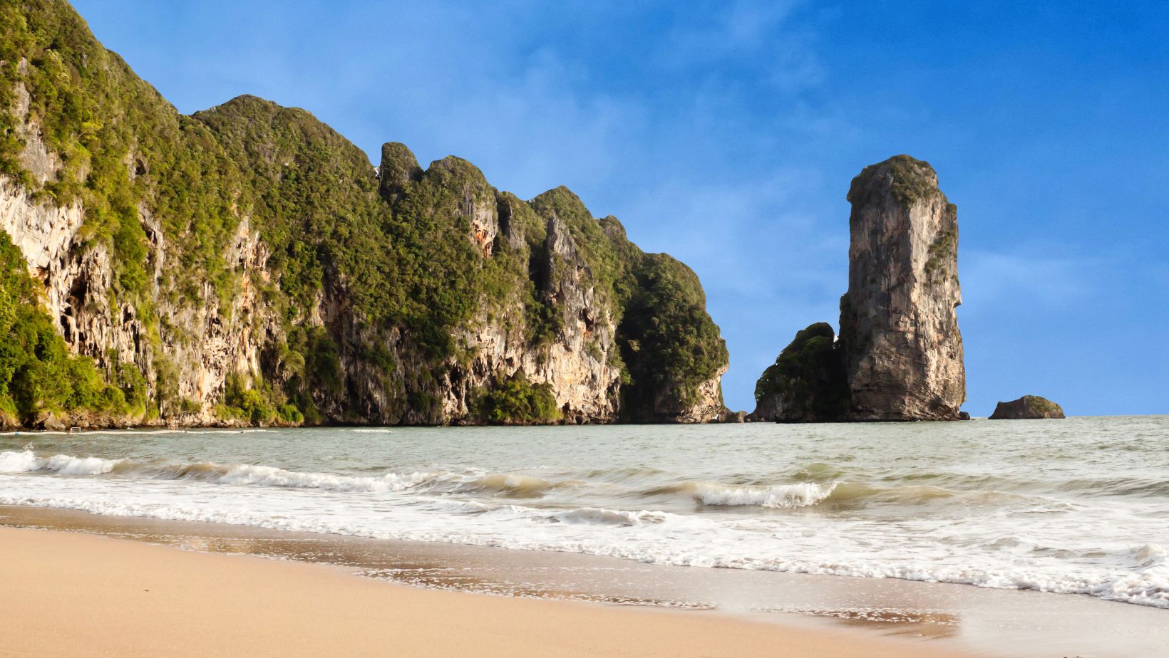 Pai Plong Beach is tucked into a picturesque cove surrounded by towering cliffs and dense tropical greenery. The sand is soft and golden, the sea is clear and calm, and the atmosphere is significantly more peaceful than at Ao Nang or Railay.