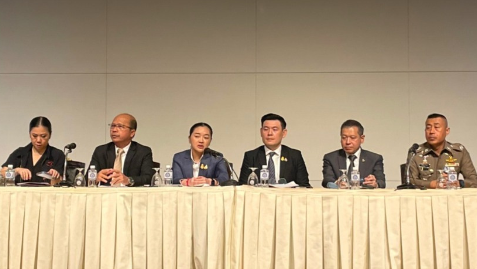 The high-level briefing included Deputy Minister of Foreign Affairs Jakkapong Sangmanee, Minister of Tourism and Sports Sudawan Wangsuphakijkosol, Governor of the Tourism Authority of Thailand Thapanee Kiatphaibool, Permanent Secretary for Foreign Affairs Sarun Charoensuwan, Assistant Commissioner of Royal Thai Police Pol. Lt. Gen. Samran Nuanma, and Permanent Secretary of the Ministry of Tourism and Sports Arrun Boonchai.