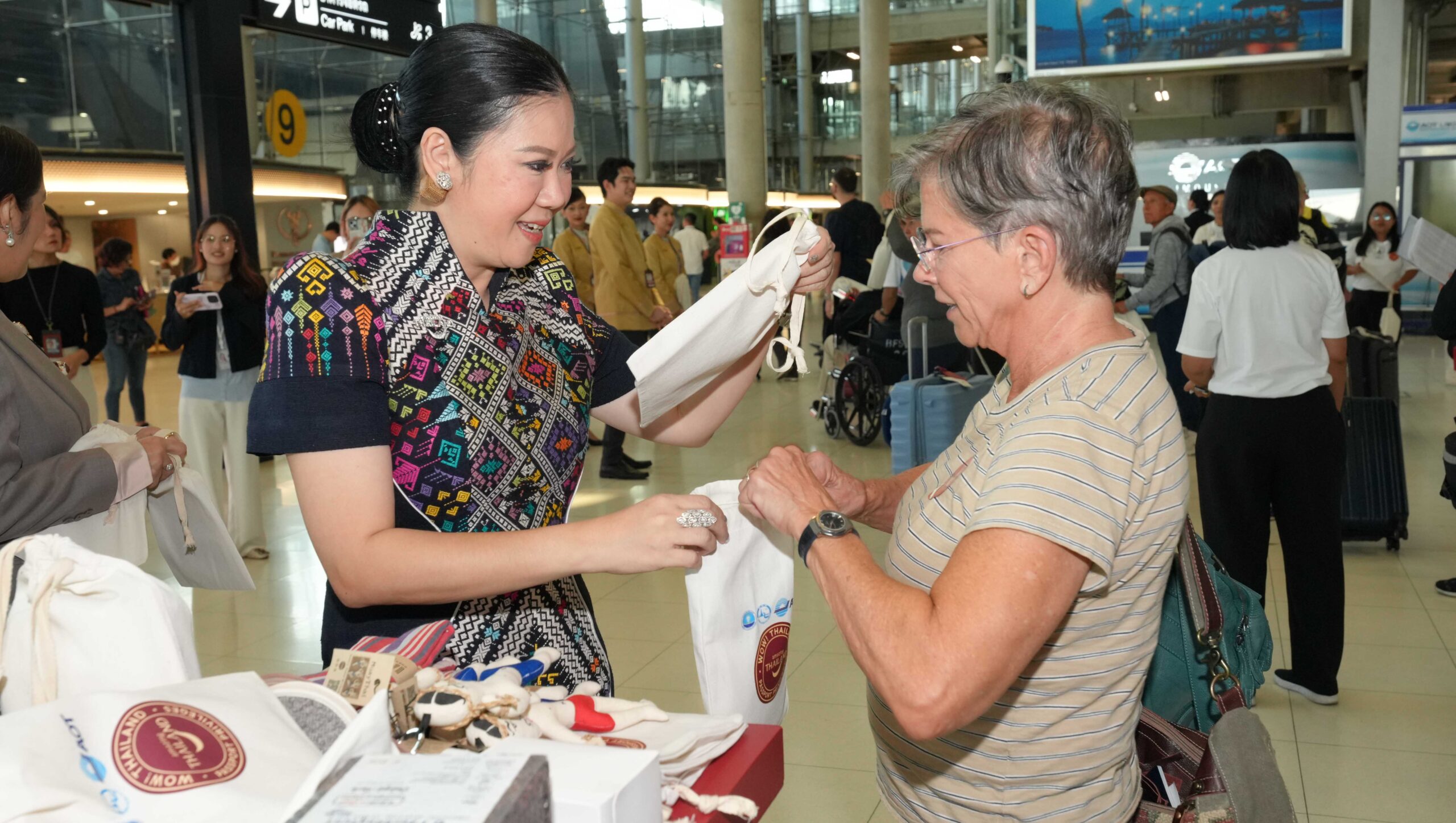 Visitors arriving at Suvarnabhumi Airport were greeted with a curated selection of “Must Do” Thai souvenirs, each designed to reflect Thailand’s vibrant cultural heritage. These items include a variety of experiences across several themes: Must Taste (iconic Thai cuisine), Must Try (Muay Thai lessons), Must Buy (traditional Thai textiles and handicrafts), Must Seek (renowned tourist sites and cultural attractions), and Must See (authentic Thai performances).